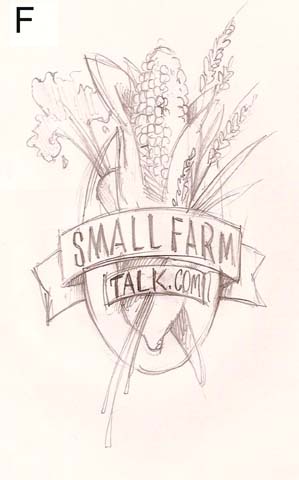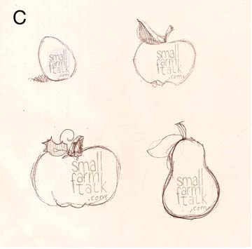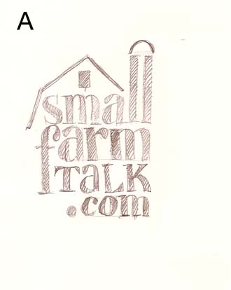 Rough logo sketches for SmallFarmTalk.com