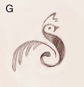 G. I always like to play with letterforms, and I used the initial "S" to illustrate the king of most barnyards: the rooster.