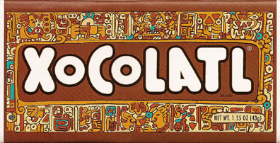 "Xocolatl" is the Aztec word for chocolate. I developed a style that alludes to the name's origin without having to explain. The intricate Aztec graphics are intended to be versionable with hidden stories. The stories allow for ongoing promotions and consumer loyalty programs.