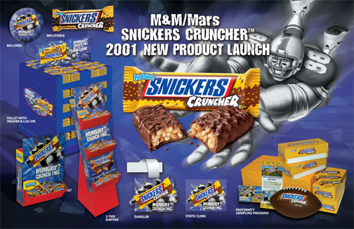 OBJECTIVE: Produce materials to help launch new Snickers Cruncher brand.